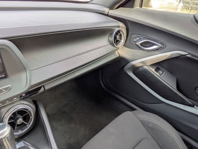 Black 2023 Chevrolet Camaro 1LT RWD 8-Speed Automatic 2.0L Turbocharged 18 Silver-Painted Aluminum Wheels, 4-Wheel Disc Brakes, 6 Speakers, 6-Speaker Audio System Feature, 6-Way Power Front Passenger Seat Adjuster, 8-Way Power Driver Seat Adjuster, ABS brakes, Air Conditioning, Alloy wheels, AM/FM radio: SiriusXM, Apple CarPlay/Android Auto, Automatic temperature control, Bluetooth® For Phone, Brake assist, Bumpers: body-color, Cloth Seat Trim, Compass, Convertible roof lining, Delay-off headlights, Deleted 3 Years of Remote Access, Driver door bin, Driver vanity mirror, Dual front impact airbags, Dual front side impact airbags, Electronic Stability Control, Exterior Parking Camera Rear, Four wheel independent suspension, Front anti-roll bar, Front Bucket Seats, Front Center Armrest, Front reading lights, Front Sport Bucket Seats, Fully automatic headlights, Glass rear window, Illuminated entry, Knee airbag, Leather Shift Knob, Low tire pressure warning, Occupant sensing airbag, Paddle-Shift Manual Controls, Panic alarm, Passenger door bin, Passenger vanity mirror, Power convertible roof, Power door mirrors, Power driver seat, Power passenger seat, Power steering, Power windows, Preferred Equipment Group 1LT, Premium audio system: Chevrolet Infotainment System, Radio data system, Radio: Chevrolet Infotainment 3 System, Rear anti-roll bar, Rear window defroster, Remote keyless entry, Remote Vehicle Starter System, Security system, SiriusXM Radio, Speed control, Speed-sensing steering, Spoiler, Steering wheel mounted audio controls, Tachometer, Telescoping steering wheel, Tilt steering wheel, Tire Inflation Kit, Traction control, Trip computer, Variably intermittent wipers, Voltmeter.