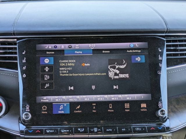 Bright White Clearcoat 2023 Jeep Grand Wagoneer 4WD 8-Speed Automatic 6.4L V8 19 Speakers, 3.92 Rear Axle Ratio, 3rd row seats: bench, 4-Wheel Disc Brakes, ABS brakes, Adjustable pedals, Air Conditioning, Alloy wheels, AM/FM radio: SiriusXM with 360L, Anti-whiplash front head restraints, Audio memory, Auto High-beam Headlights, Auto-dimming door mirrors, Auto-dimming Rear-View mirror, Auto-leveling suspension, Automatic temperature control, Brake assist, Bumpers: body-color, Compass, Delay-off headlights, Driver door bin, Driver vanity mirror, Driver's Seat Mounted Armrest, Dual front impact airbags, Dual front side impact airbags, Electronic Stability Control, Emergency communication system: Automatic SOS Call, Four wheel independent suspension, Front anti-roll bar, Front Bucket Seats, Front Center Armrest w/Storage, Front dual zone A/C, Front fog lights, Front reading lights, Fully automatic headlights, Garage door transmitter, Genuine wood console insert, Genuine wood dashboard insert, Genuine wood door panel insert, Heads-Up Display, Heated door mirrors, Heated front seats, Heated rear seats, Heated steering wheel, Illuminated entry, Knee airbag, Leather steering wheel, Leather Trimmed Bucket Seats, Low tire pressure warning, Memory seat, Navigation System, Normal Duty Suspension, Occupant sensing airbag, Outside temperature display, Overhead airbag, Overhead console, Panic alarm, Passenger door bin, Passenger seat mounted armrest, Passenger vanity mirror, Pedal memory, Power adjustable front head restraints, Power door mirrors, Power driver seat, Power Liftgate, Power moonroof, Power passenger seat, Power steering, Power windows, Quick Order Package 23S, Radio data system, Radio: Uconnect 5 Nav w/12.0 Display, Rain sensing wipers, Rear air conditioning, Rear anti-roll bar, Rear dual zone A/C, Rear reading lights, Rear seat center armrest, Rear window defroster, Rear window wiper, Reclining 3rd row seat, Remote keyless entry, Security system, Speed control, Speed-sensing steering, Speed-Sensitive Wipers, Split folding rear seat, Steering wheel memory, Steering wheel mounted audio controls, Tachometer, Telescoping steering wheel, Tilt steering wheel, Traction control, Trip computer, Turn signal indicator mirrors, Two Tone Paint Group, Variably intermittent wipers, Ventilated front seats, Voltmeter, Wheels: 20 x 9.0 Premium 3 Aluminum.